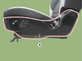 Befestigungsschrauben lösen, dann äußeren Vordersitzbezug (A) entfernen.