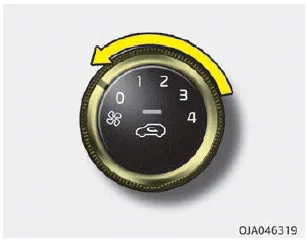 Zum Ausschalten des Gebläses drehen Sie den Reglerknopf für die Gebläsedrehzahl in die Stellung „0“.