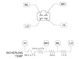 Bei Abweichung des gemessenen Widerstandswerts von den Vorgaben ist der Gebläse-Widerstand zu ersetzen. (Nach Entfernen des Widerstands)