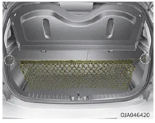 Um zu verhindern, dass sich das Ladegut unkontrolliert im Laderaum bewegen kann, können Sie mit den 2 Haltern im Laderaum ein Gepäcknetz befestigen.