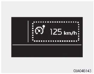 Um über die voreingestellte Geschwindigkeitsbegrenzung zu fahren, müssen Sie das Gaspedal stärker betätigen (mehr als ca. 80 %), bis der Kickdown- Mechanismus durch ein Klickgeräusch aktiviert wird. Dann blinkt die eingestellte Höchstgeschwindigkeit und es ertönt ein Warnsignal, bis Sie wieder auf eine Geschwindigkeit unter der Höchstgeschwindigkeit zurückkehren.
