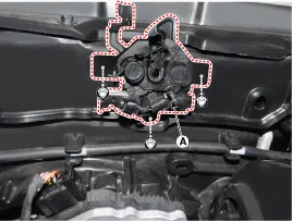 Schrauben lösen und dann untere Motorhaubenverriegelung (A) entfernen.