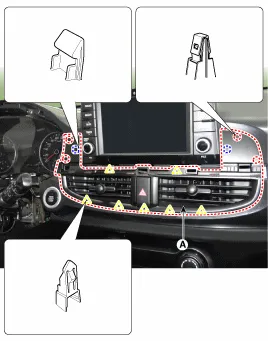 Mittelkonsolenblende (A) mit einem Ausbauwerkzeug entfernen.