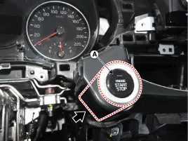Befestigungsschrauben lösen und Motorstartknopf (A) in Pfeilrichtung ausbauen.