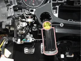 Schrauben lösen, dann untere Armaturenbrettverkleidung (A) abtrennen.