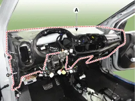 Armaturenbrett-Seitenverkleidung [LH] (A) mit einem Ausbauwerkzeug entfernen.