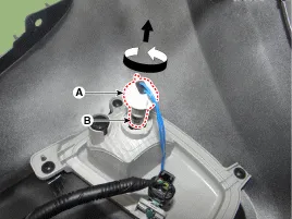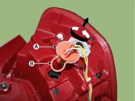 Die Rückfahrleuchten-Glühlampe (B) durch Drehen der Fassung (A) entgegen dem Uhrzeigersinn entfernen.