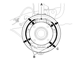 Falls der lnnendurchmesser der Bremstrommel größer ist, als die Verschleißgrenze erlaubt, die Bremstrommel ersetzen. |
