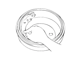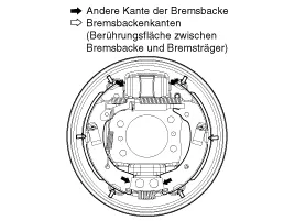 Bremszylinderfett oder ein gleichwertiges Gummifett auf die dargestellten Bremsbackenkanten und die gegenüberliegenden Kanten auftragen. Darauf achten, dass kein Fett auf die Bremsbeläge kommt.