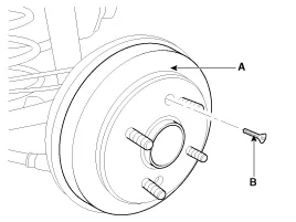 Schraube (B) lösen, dann die hintere Bremstrommel (A) abbauen.