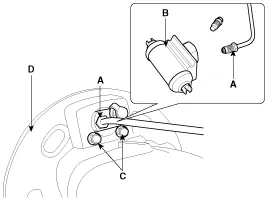 Hinteren Raddrehzahlsensor ausbauen. (Siehe ESC (Elektronische Stabilitätshilfe)-System - "Hinterraddrehzahlsensor") |