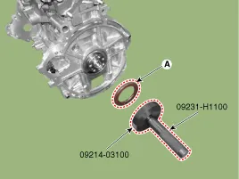 Mit dem Spezialwerkzeug (09214-03100, 09231-H1100) und einem Kunststoffhammer eine neue Öldichtung (A) eintreiben, bis die Oberfläche des Spezialwerkzeugs mit dem Motorblock bündig ist.