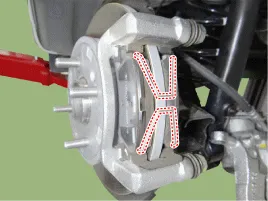 Wenn der Taumelschlag durch die Veränderung der Position der Bremsscheibe nicht korrigiert werden kann, Bremsscheibe ersetzen. |