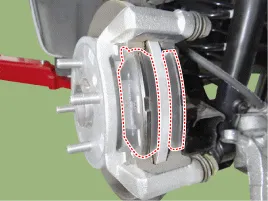 Bremsbeläge auf Verschleiß und Abnutzung prüfen. |