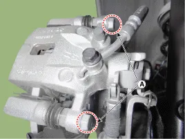 Schrauben (A) lösen, dann hinteres Bremssattelgehäuse abnehmen.
