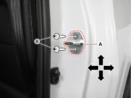 Den Außengriff der Tür anfassen und die Tür gegen die Karosserie drücken, um sicherzustellen, dass der Schließer ein bündiges Schließen zulässt. Wenn die Tür ordnungsgemäß schließt, die Schrauben anziehen und es nochmals überprüfen. |