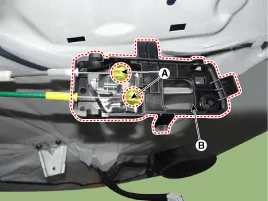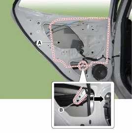 Befestigungsschrauben lösen, dann Hintertürverkleidungshalterung (A) entfernen.