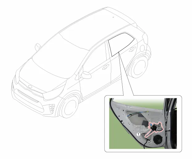 Hintere Türverkleidung abbauen. (Siehe Hintertür - "Hintertürverkleidung") |