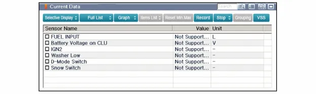 Fehlersuche Fehlersuche Fehler Fehlersymptom ZU PRÜFENDE TEILE Detaillierte Überprüfungen Relevante Teile/ BAUTEILE-ÜBERSICHT Bildschirmdisplay LCD-Bildschirm wird nicht eingeschaltet 1) Steckverbinderanschlüsse 2) BAUTEILE-ÜBERSICHT 1) Steckverbinderanschlüsse überprüfen 2) Verkabelung von B+, IGN und GND überprüfen 3) Andere Komponenten prüfen.