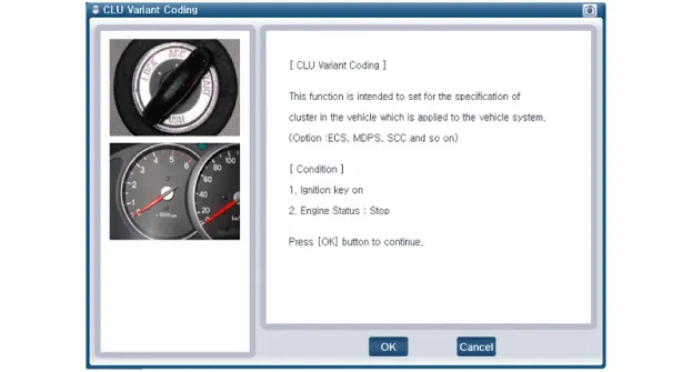 'Fahrzeugmodell' und 'Kombiinstrumentmodul (CLU)' wählen, um das Fahrzeug mit dem Tester zu untersuchen