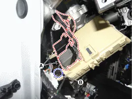Kabelbefestigungsclip (B) des Innenraum-Sicherungskastens entfernen.