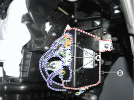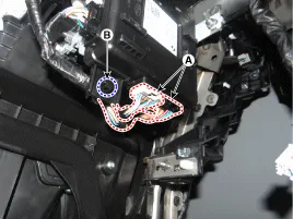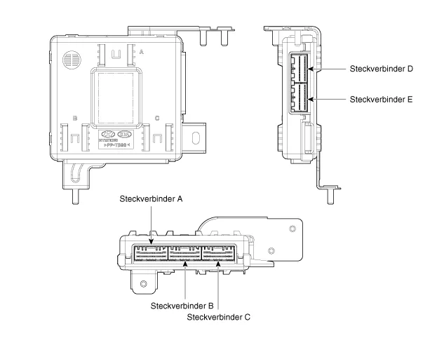 Steckverbinder (A) abziehen, dann Karosseriesteuermodul (B) entfernen.