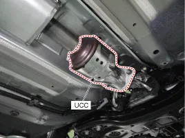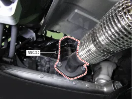 Obere Strebe (A) des Aufwärmkatalysators (WCC) entfernen und dann den Aufwärmkatalysator (WCC) (B) ausbauen.