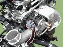 Verlängerungssteckverbinder (A) des elektrischen Bypassventil-Stellantriebs (EWGA) abziehen.