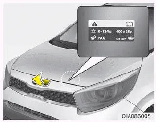 Der Kältemittelaufkleber befindet sich an der Unterseite der Haube.