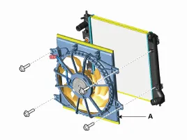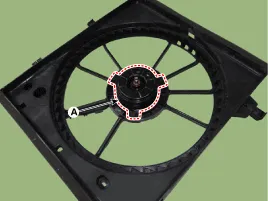 Lüftermotor (A) von der Kühlerlüfterverkleidung abbauen.