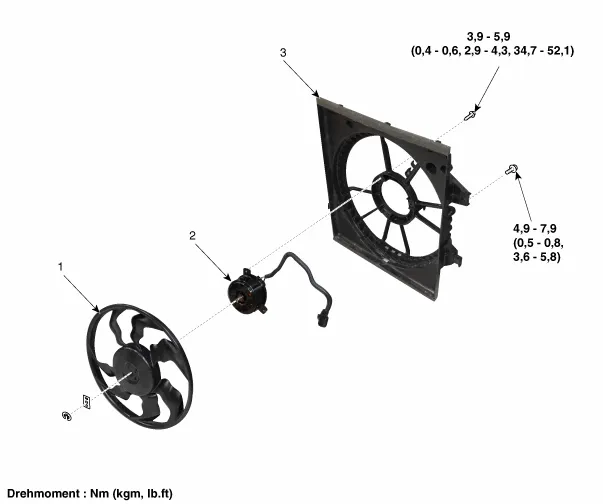 | 1. Kühlerlüfter 3. Kühllüftermotor |