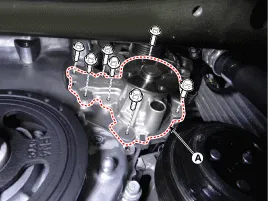Die Befestigungsschrauben der KühlmitteÖlpumpe auf festen Sitz