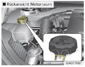 Stellen Sie sicher, dass der Kühlmitteldeckel nach dem Nachfüllen des Kühlmittels richtig geschlossen ist. Anderenfalls könnte der Motor während der Fahrt überhitzen.