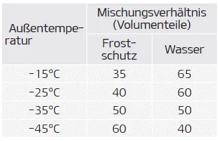 Entnehmen Sie das Mischungsverhältnis der nachstehenden Tabelle.