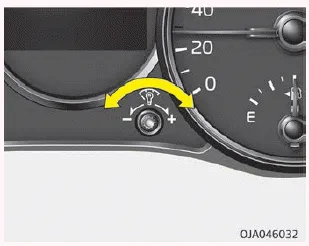 Die Helligkeit der Kombiinstrument-Beleuchtung wird durch Drehen des Beleuchtungsreglers ("+" oder "-") geändert, wenn der Zündschalter oder der Knopf ENGINE START/STOP (Motorstart/- stopp) in Position ON steht oder die Rückleuchten eingeschaltet sind.