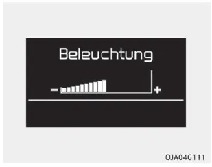 Die Helligkeit der Beleuchtung des Kombiinstrumentes wird angezeigt (Kombiinstrument Typ B). Wenn die Helligkeit den höchsten oder niedrigsten Wert erreicht, ertönt ein Alarmsignal (ausstattungsabhängig).