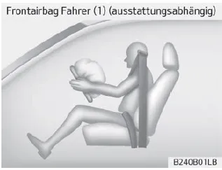 Ein vollständig aufgeblasener Airbag, in Verbindung mit einem ordnungsgemäß angelegten Sicherheitsgurt, verlangsamt die Vorwärtsbewegung des Fahrers oder Beifahrers und reduziert das Risiko von Kopf- und Brustverletzungen.