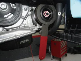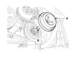 Antriebsriemen lösen. G 1.0 MPI-KAPPA (Siehe Motormechanik - "Antriebsriemen") G 1.2 MPI-GAMMA (Siehe Motormechanik - "Antriebsriemen") G 1.0 T-GDI KAPPA (Siehe Motormechanik - "Antriebsriemen") |