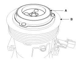 Sicherungsring (A) und dann Feldspule (B) ausbauen. Spule und Kompressor nicht beschädigen.