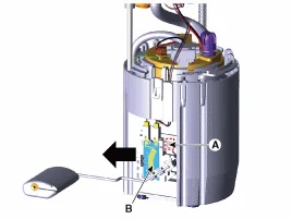 Steckverbinder (A) des Kraftstoffpumpenmotors und Steckverbinder (B) des Tankgebers abziehen.
