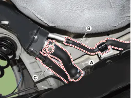 Tankeinfüllschlauch (A), Ausgleichsschlauch (B) und Schlauch am Aktivkohlebehälter (C) abziehen.