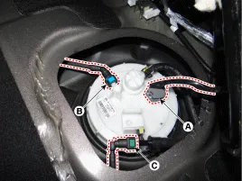Stecker (A) der Kraftstoffpumpe abklemmen. |