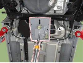 Fahrzeug anheben und Kraftstofftank mit einem Wagenheber (A) abstützen.