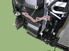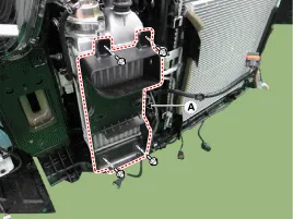 Verkabelung (A) vom Ladeluftkühlerschutz abnehmen.