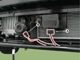 Steckverbinder (A) des unterstützenden Notbremsgeräts (AEB) und Hupensteckverbinder (B) abziehen.