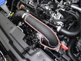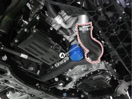 Ladeluftkühler-Auslassschlauch und -leitung (A) abtrennen.