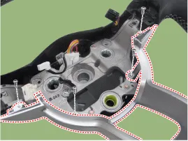 Das Fahrerairbag-Modul ausbauen. (Siehe Rückhaltesystem - "Fahrer-Airbag-Modul (DAB) und Wickelfeder") |