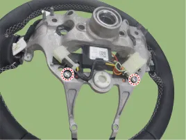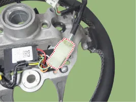 Schraube der Lenkradfernbedienungssteuerung lösen und Steckverbinder der Fernbedienung abziehen.