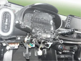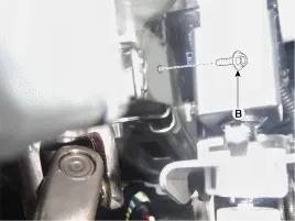 Muttern (A) und Schraube (B) lösen, dann die Lenksäule ausbauen.