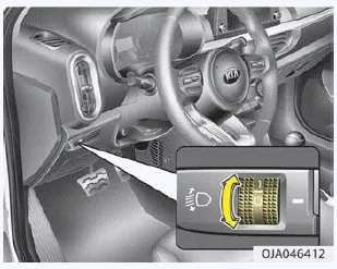 Um die Leuchtweite entsprechend der Anzahl der Insassen und dem zugeladenen Gewicht im Laderaum einzustellen, drehen Sie das Stellrad.